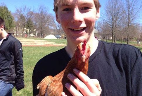 Students gather to volunteer at a farm four miles off campus (we go once a month). It is owned by a retired Princeton professor, Bob, and his wife Caroline. Tasks include weeding, harvesting, digging beds, shoveling manure, and tending to the chickens, cows, and goats.